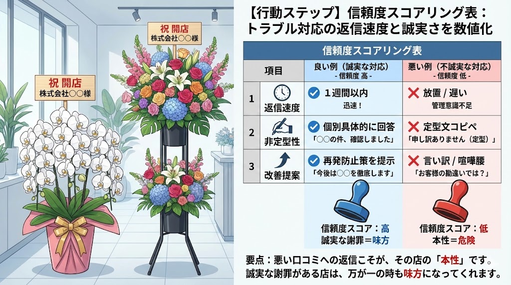【行動ステップ】信頼度スコアリング表:トラブル対応の返信速度と誠実さを数値化する